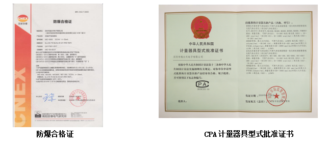 符合最新国标并取得CMC计量器具生产许可证、防爆认证等资质